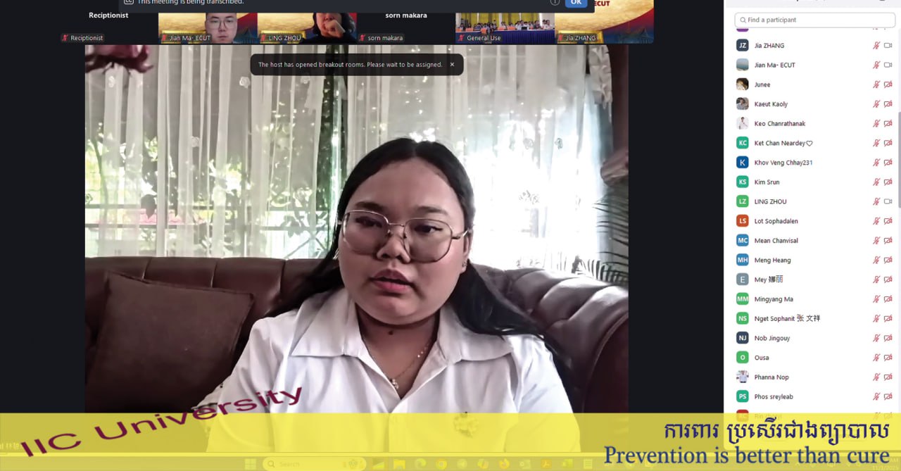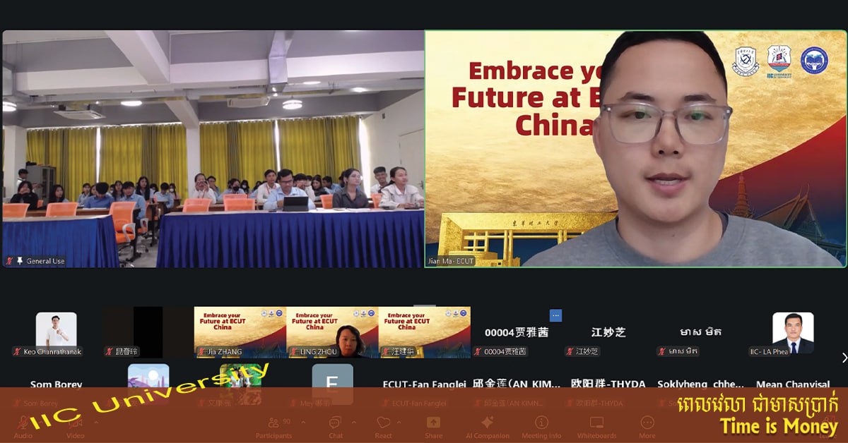 កាលពីថ្ងៃទី1 ខែវិច្ឆិកា ឆ្នាំ2025 សាកលវិទ្យាល័យIIC និងសាកលវិទ្យាល័យ East China University of Technology (ECUT) បានរៀបចំសិក្ខាសាលាតាមអនឡាញ ស្តីពី គន្លឹះដើម្បីទទួលបានអាហារូបករណ៍ពីសាកលវិទ្យាល័យ East China University of Technology ដែលមានការអញ្ជើញចូលរួមពីបុគ្គលិក សាស្រ្តាចារ្យ របស់សាកលវិទ្យាល័យទាំងពីរ និស្សិត និងសិស្សានុសិស្ស ចំនួនជាង100នាក់។ សិក្ខាសាលានេះផងដែរក៏បានផ្តល់អត្ថប្រយោជន៍សំខាន់ៗសម្រាប់អ្នកចូលរួម បានយល់ដឹងពីព័ត៌មានសិក្សា គោលការណ៍ស្នើសុំវីសាចិន មុខវិជ្ជាសិក្សាដែលបង្រៀនជាភាសាអង់គ្លេស របៀបស្នើសុំអាហារូបករណ៍ពីសាកលវិទ្យាល័យ ECUT និងការការចែករំលែកបទពិសោធន៍ពីនិស្សិតកម្ពុជាដែលបានទៅសិក្សានៅសាកលវិទ្យាល័យ ECUT។ សូមបញ្ជាក់ថានេះគឺជាឱកាសល្អសម្រាប់ប្អូនៗនិស្សិត និងសិស្សានុសិស្សដែលមានបំណងចង់ទៅបន្តកាសិក្សាថ្នាក់បរិញ្ញាបត្រ អនុបណ្ឌិត និងបណ្ឌិតនៅប្រទេសចិន។